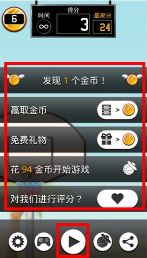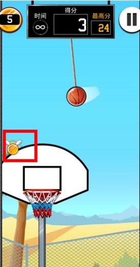 进入游戏后,点击屏幕让篮球下落。