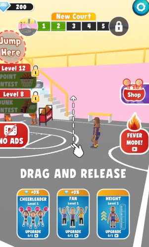 盖帽高手,在这里没有过多的技巧,只要你把握好对手扣篮的时机,起身往上跳便能完成一次完美的盖帽啦!而且游戏为了使玩家们能畅快盖帽,去除了重力系统使你能花式跳跃,这样你就能做出平常做不到的盖帽动作了。