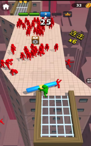 我武器贼牛,抖音热门休闲小游戏。游戏中的场景在楼顶之上,操控你的小人手拿长棍,不断变长,争取将所有敌人推下楼顶,完成你的操作即可过关了。