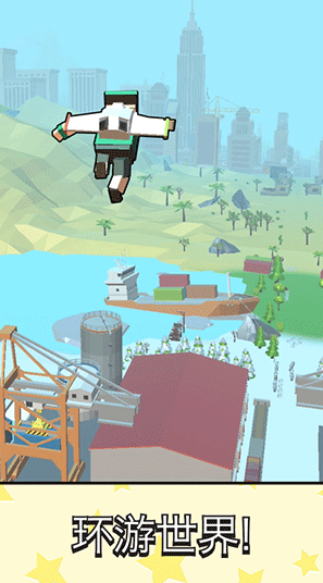 4、不断的飞行跳跃探索整个世界环游全球。