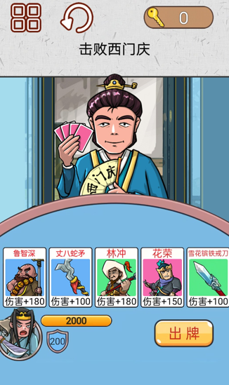 水浒梗传记是一款根据水浒传来改编的休闲游戏,游戏中会出现许多的水浒角色,玩家们将搭配不同的武器来出牌,Q版的手绘画风,操作难度很是低,合理搭配不同的阵容,游戏的关卡还是比较的丰富的,难度也是不断地升级的哦~游戏的合成的效果比较的出众。
