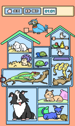 1、卡通画风世界,这里有很多的物品,比如动物,衣服,食物等等,提供有多种的场景,自由进行收纳;