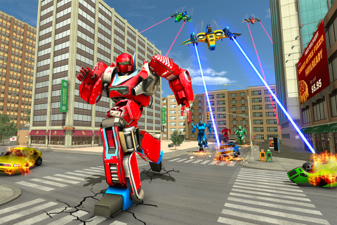 无人机机器人九游版是一款动作格斗类闯关游戏,游戏采用3D风格打造。游戏内玩家将控制一名机器人在城市当中展开冒险,你需要与敌人展开激烈的战斗。而且游戏中的机器人还有着变形的功能,非常有趣。对此款游戏感兴趣的玩家不要错过,赶紧点击下载开始游玩吧。