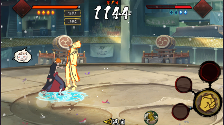 2、选择不同的角色进行对战,挑战各种有趣的游戏关卡,展示自己的忍术实力。