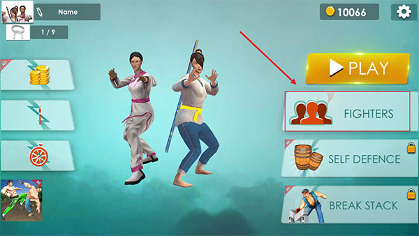 1、进入游戏后,首先点击【FIGHTERS】挑选需要上场的角色。
