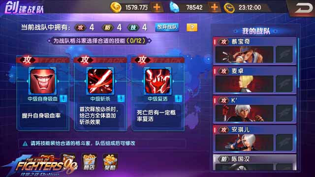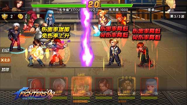 暴力输出阵容:包括八神庵、草薙京*NESTS、克拉克等角色。这些角色爆发力强但防御力较低,适合在短时间内迅速击败对手。需要注意的是,这类阵容的冷却时间和敌方清理速度需要合理搭配。