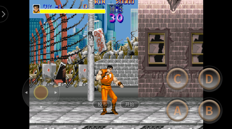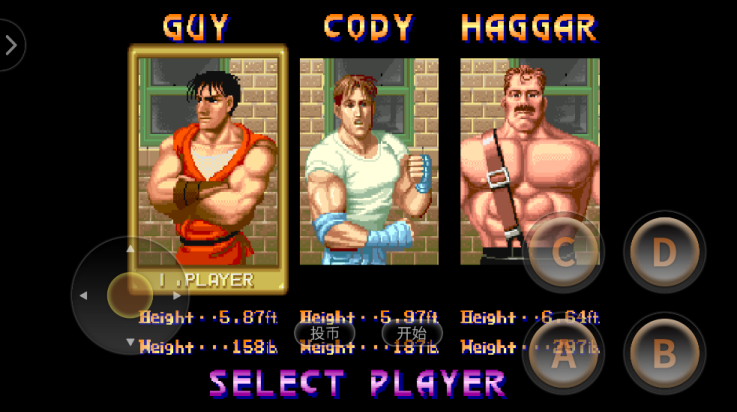第1关SLUM(街道1+地下室+街道2),流程短,敌人易对付。小心处:1地下室尽头会从来两个胖子关底:肌肉男,被打剩3分之2和3分之1血时会叫杂兵,然后待主角打杂兵时偷袭,小心其跳踢和不要倒地追击