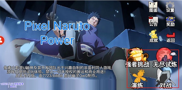 像素火影POWer魔改版是一款由国内玩家自制的像素风动作格斗类手游,这款游戏不仅为我们的玩家提供了几十位超经典的火影动漫角色来进行选择。而且我们的玩家还可以在游戏里通过使用每一个角色的独门忍术去战斗,从而将自己的对手成功打败,取得胜利。