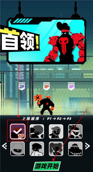 2、打开游戏后,首先选择上场人物,然后点击开始游戏