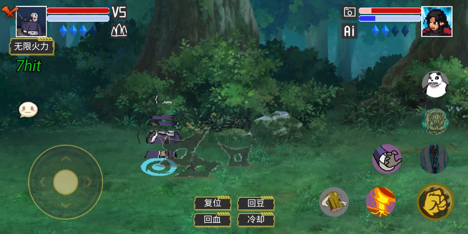 2、二技能:强化形态下的位移距离大大增加,例如下图,原本的场景中见不到另一位忍者,使用强化的抓取后可以到达这个位置,甚至还要更远!