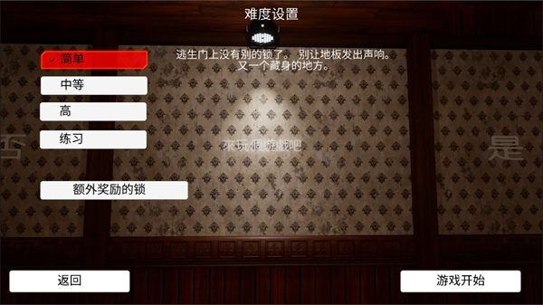 2、游戏目前只有一个正常模式,玩家点击后,可以调整难度,简单、中等、高等、练习。