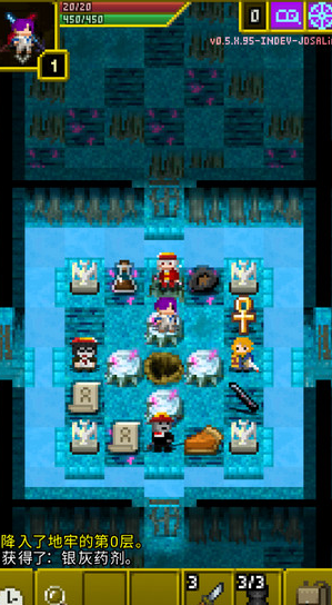 游戏的操作方式非常简单,玩家只需要点击屏幕就能让角色进行移动,点击出现在面前的敌人就能自动发起攻击,如果发现道具则会自动将道具收入到包裹之内。游戏界面的左下角按钮分别是“等待一个回合”,“搜寻身边范围”以及“针对一个目标的检查”,好好利用这些功能就能在地牢中发现意想不到的收获。