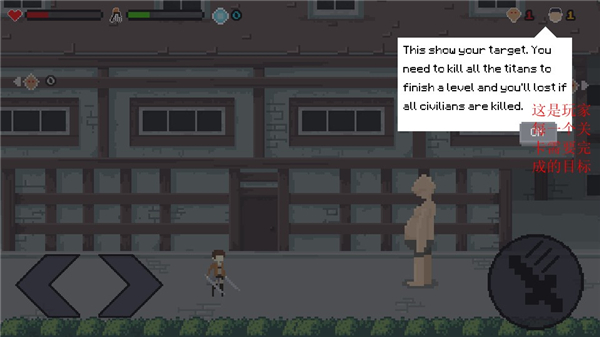 像素进击的巨人官方版(Pixel on Titan)是一款像素风格的休闲益智类游戏,该游戏以闯关的模式进行,玩法非常的简单,玩家只需要控制自己的角色攻击巨人,杀死巨人,