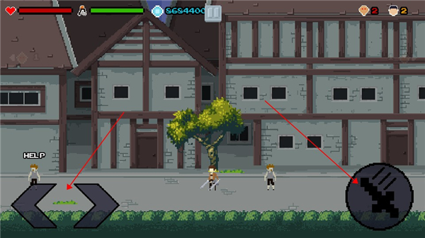 8、左边的按钮可以控制角色左右移动,右边的按钮可以控制角色进行攻击;