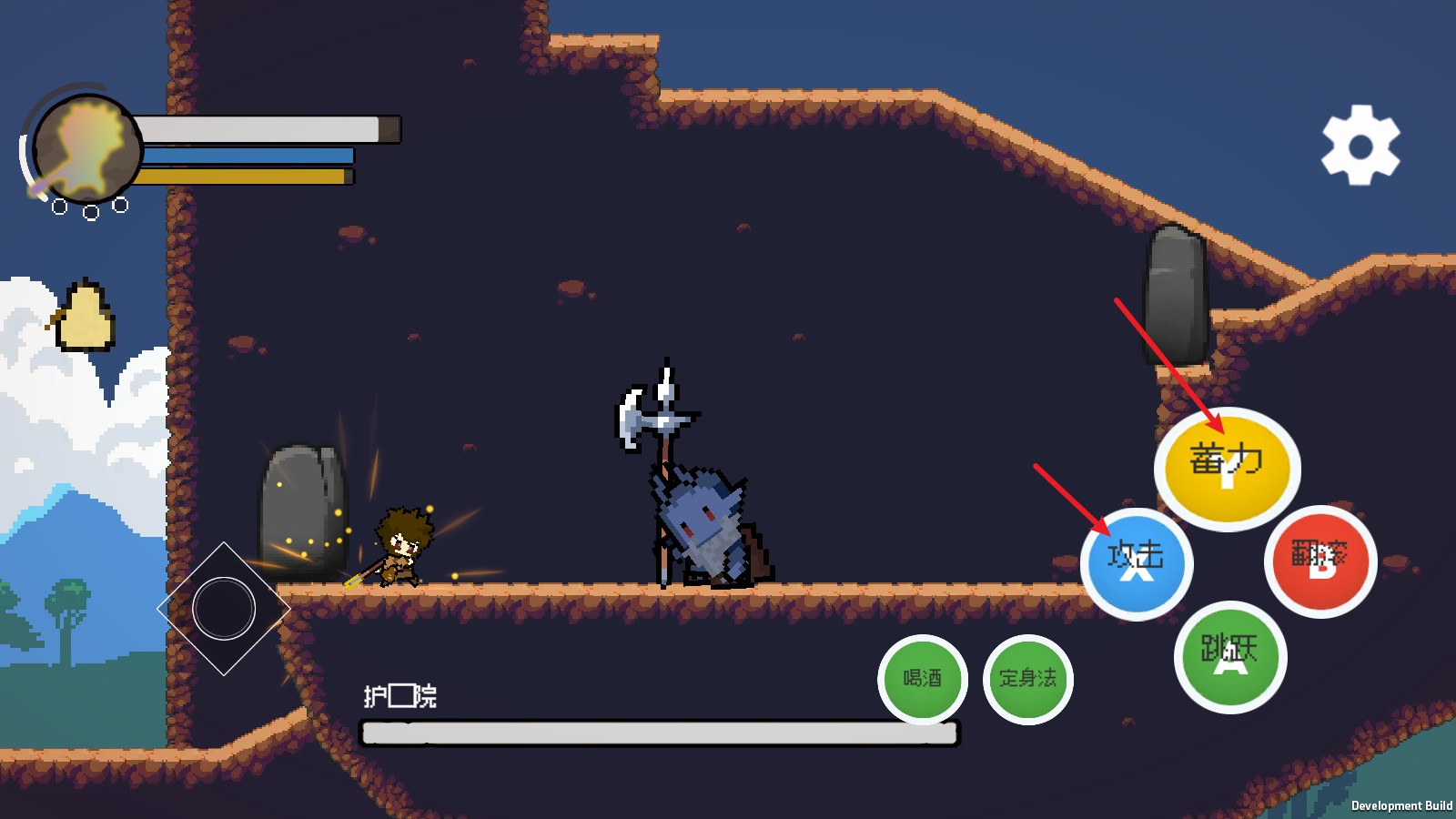 5、Y键则是蓄力攻击,注意蓄力期间不要被攻击,不然会打断蓄力的。
