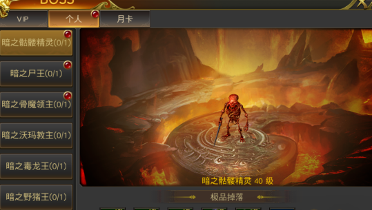 1.玩家通过BOSS面板可进入个人BOSS副本进行挑战