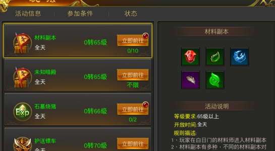 1.65级以上玩家可在材料副本NPC处进入材料副本