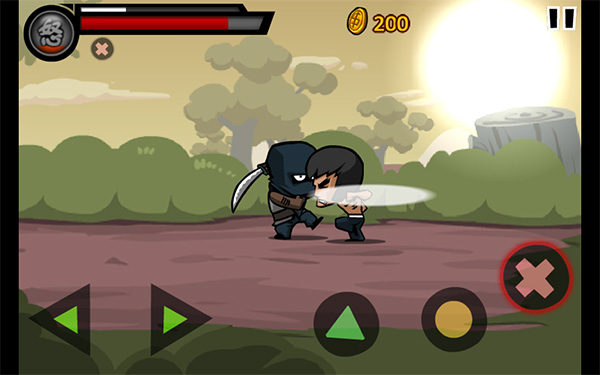 进入到第七关中,游戏场景依然在森林,玩家此时的等级也将有所提升,并且应该可以学会Lv3等级的OOOO四连击。敌人方面又增加了普通忍者兵。在攻击方面依然采用先击杀步枪兵,同时将敌人引致一边,用四连击进行攻击。同时多加留意随机掉落的道具提升自身的能力。有必要的时候点击屏幕左上方的怒字开启必杀技。