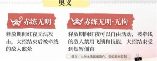 宁红夜的奥义(即大招)也有两种,我们称之为V1和V2。第一种大招释放期间宁红夜是无法攻击敌人的,但结束后会给敌人造成较长时间的眩晕,需要注意一下哦~
