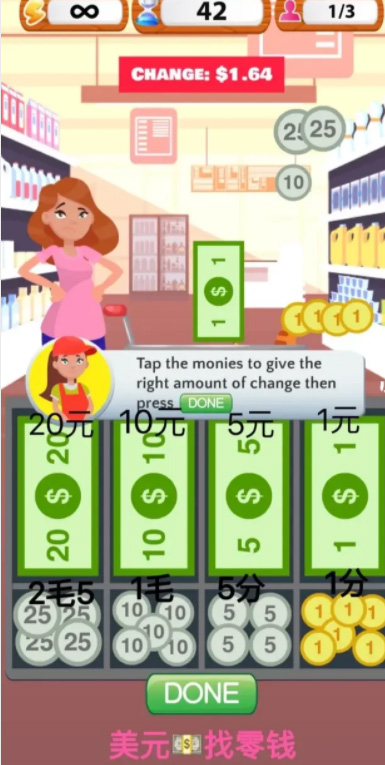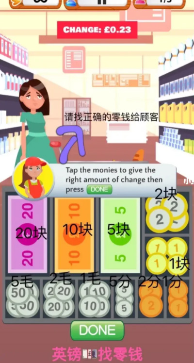 3、通过计算找零并从收银机中获取金币,挑战自己能否顺利完成所有超市收银关卡。