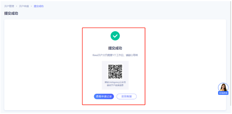 3、提交开户表单后,请耐心等候,Kwai开户大约需要1个工作日~