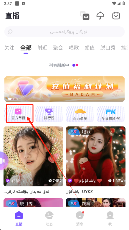 Badamlive是一款专为维吾尔族用户打造的本地化直播平台。在这个平台上,用户既可以观看丰富多彩的直播内容,也能开通自己的直播间展示才艺。平台提供完善的直播功能和互动体验,让每位用户都能找到属于自己的舞台,展现独特魅力。