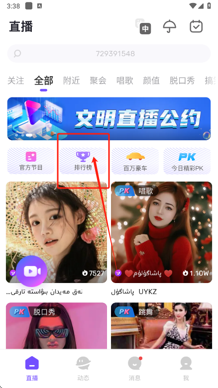 2、可以在这里看直播或者唱歌,还有很多搞笑内容可以观看;