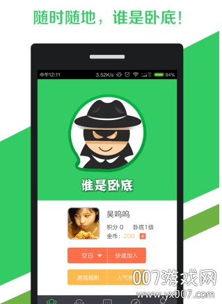 现在!我们把谁是卧底从线下搬到线上来啦!你可以畅快地和网上的卧底小伙伴大战300回合!实乃宅男宅女们居家旅行、无聊消遣必备!