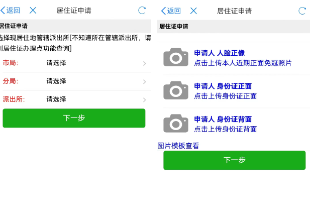 5、选择现居住地管辖派出所,并上传人脸正像以及身份证正反面后,点击“下一步”。