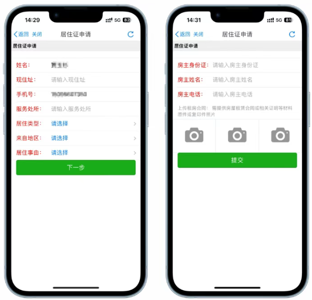 6、填写基本信息后,点击“下一步”。按照个人选择的“居住类型”填写相应的信息后,点击“提交”即可。