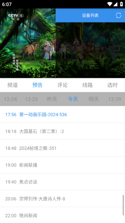 看个球电视TV版是一款非常好用的电视直播类影视软件,此款软件内涵盖大量的中央频道以及地方卫视,而且软件画质清晰,毫不卡顿,非常好用。软件中你还可以看到每个节目在不同时间段播出的内容预告,对此款软件感兴趣的用户不要错过,赶紧点击下载开始使用吧。