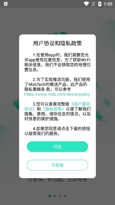 1、下载本站提供的最新版本的开心看mate app,首次打开会有如下的提示,直接点同意。