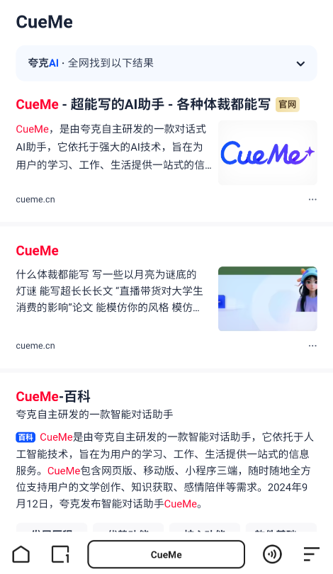 夸克CueMe是一款智能写作助手,在这里也是带来了比较全面的写作内容,用户朋友可以随时随地进行相关的智能写作,能够为用户提供出更加详细的解决方案,当然更多的功能等你来探索,有需要的朋友现在就来下载吧!