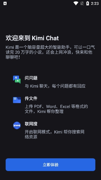 kimi智能助手app是一款带来了编辑ai服务的软件,通过这款软件能够为用户带来更加轻松的创作及生活体验,是能够极大的满足广大用户的使用需求的,有想要了解更多的用户现在就来下载吧!