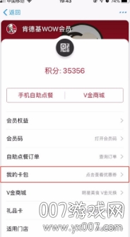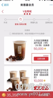 1、进入肯德基会员页面,点击V金商城,进入积分页面。