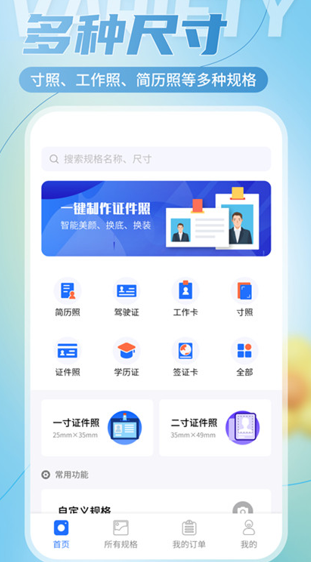 ①多种规格尺寸随意选,尺寸齐全。一寸照、二寸照、各个国家签证照、驾驶证照、健康证照、教师资格证照、会计从业资格证照、学士学位报考照、雅思考试照、专升本照,等等证件照内容都涵盖。