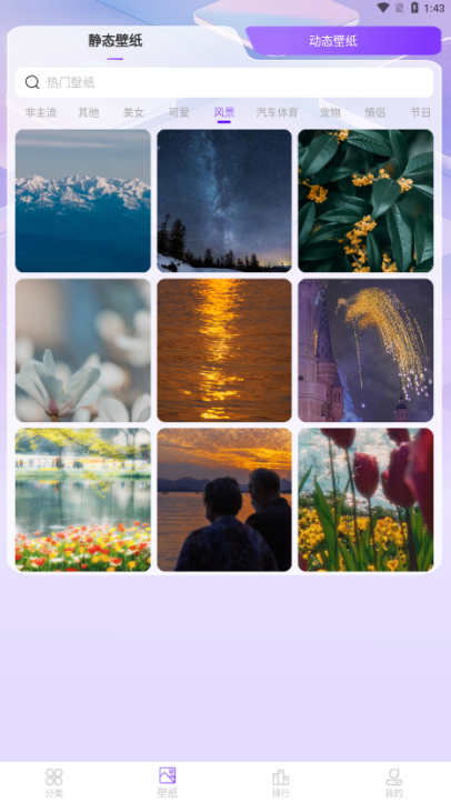 3、二次元.人物.风景.豪车等各种不同的壁纸等你来体验,更好的体验到不同风格的壁纸设置。
