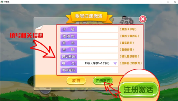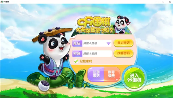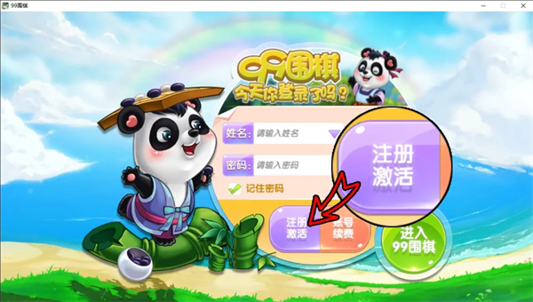 1、打开99围棋软件,在登录界面点击“注册激活”按钮;