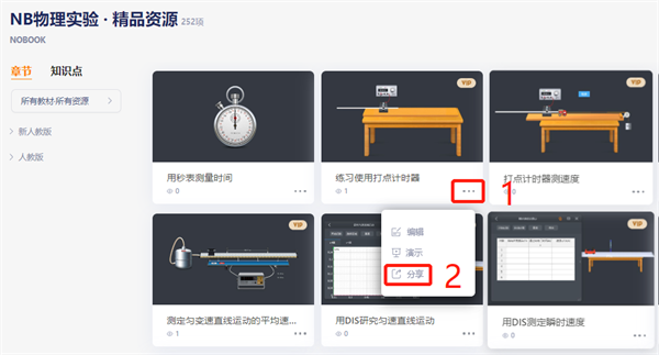 ①直接在精品资源页面,点击相应实验的“ · · · ”,点击“分享”