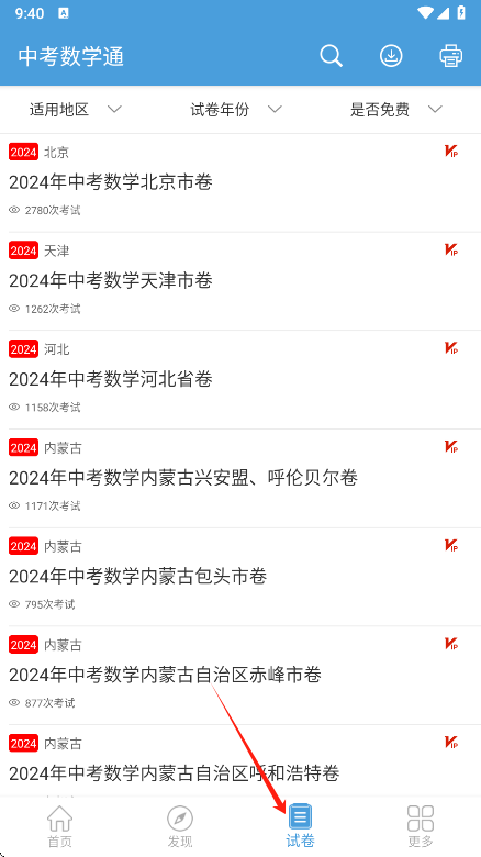 历年考试试题练习功能,能够让学生通过app做历年的考试试题。