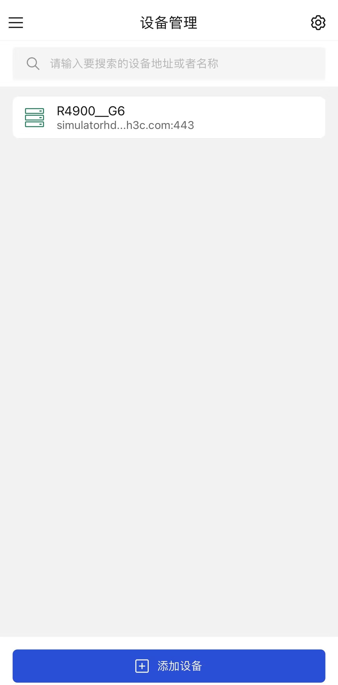 (7) 添加成功后,可以在设备管理页面查看服务器的型号、HDM管理IP地址、端口号等信息,如图所示。