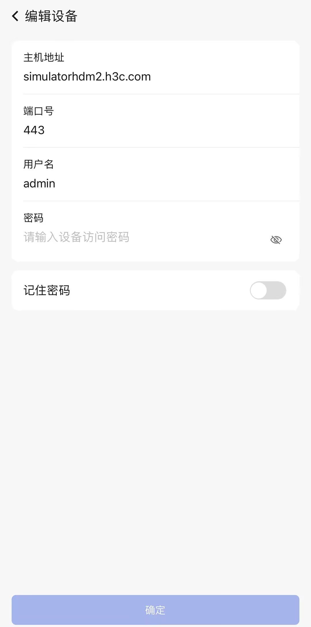 · 密码:和服务器登录用户名匹配的密码,缺省为Password@_,必填项。