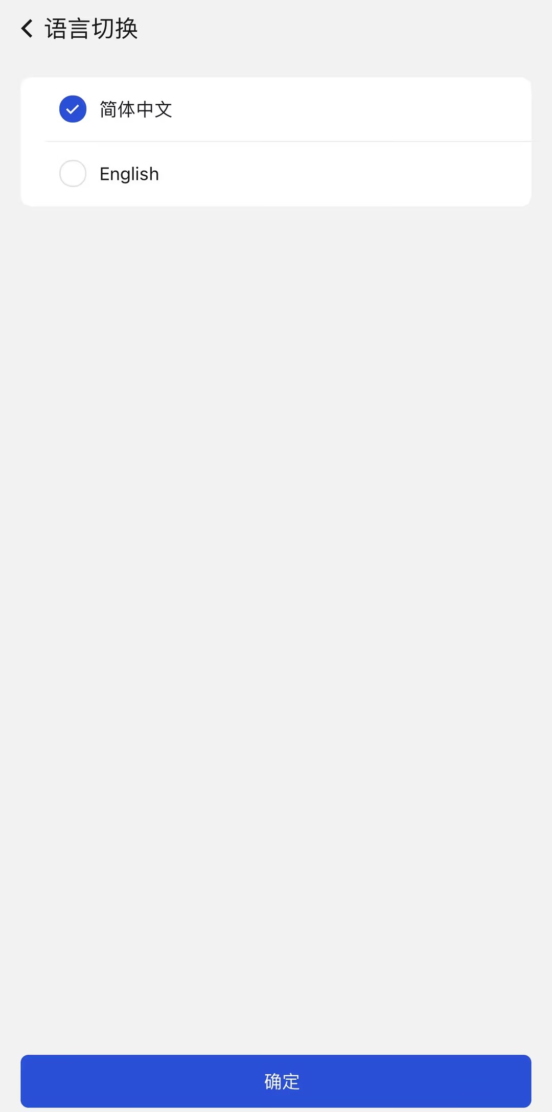 (3) 单击<语言切换>按钮,进入如图所示的设置语言页面选择语言类型,目前支持简体中文和英文(English)两种语言。