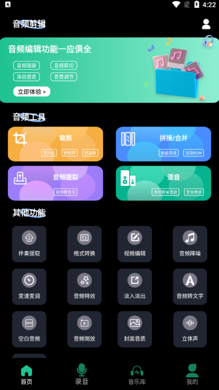 一款便捷的音频提取、音频剪辑、混音制作、音频编辑的音频工具,让您可以用多种方式上传提取各种格式的音频,转换后的音频文件可以保存到您的手机中也可以分享导出音频,同时可以享用音频裁剪、音频格式转换、音频拼接的强大音频编辑制作功能,满足你的一切需求。