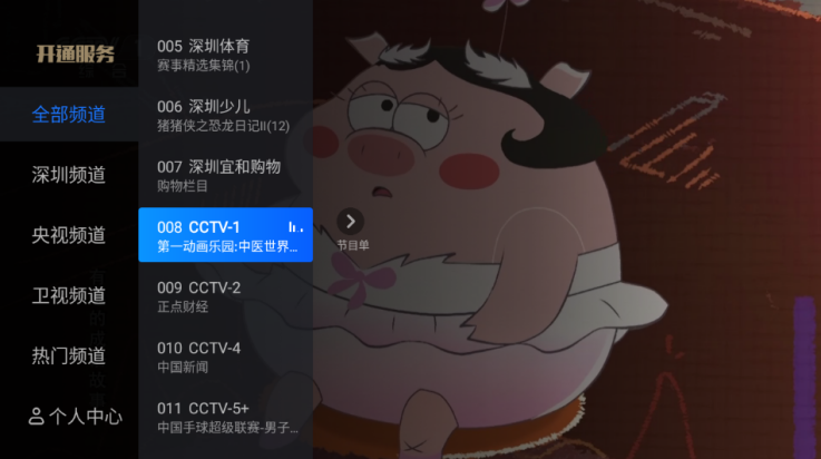 4、点击屏幕唤醒频道菜单可以自由切换你想要观看的电视频道。
