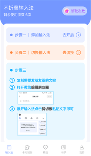 5、卡片句子还有一项黑科技就是防止发送的朋友圈文案或者图片被折叠,绑定输入法在软件内直接复制粘贴即可避免。