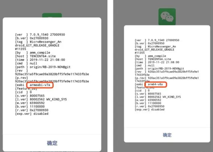 如果你的微信这里显示为 armeabi-v7a 就是32位的微信,如果你双击显示为arm64-v8a 那么就是64位。不过根据网友的反馈称,64位的体验要比32位的好,我也体验了一下,发现并没有太大的区别。
