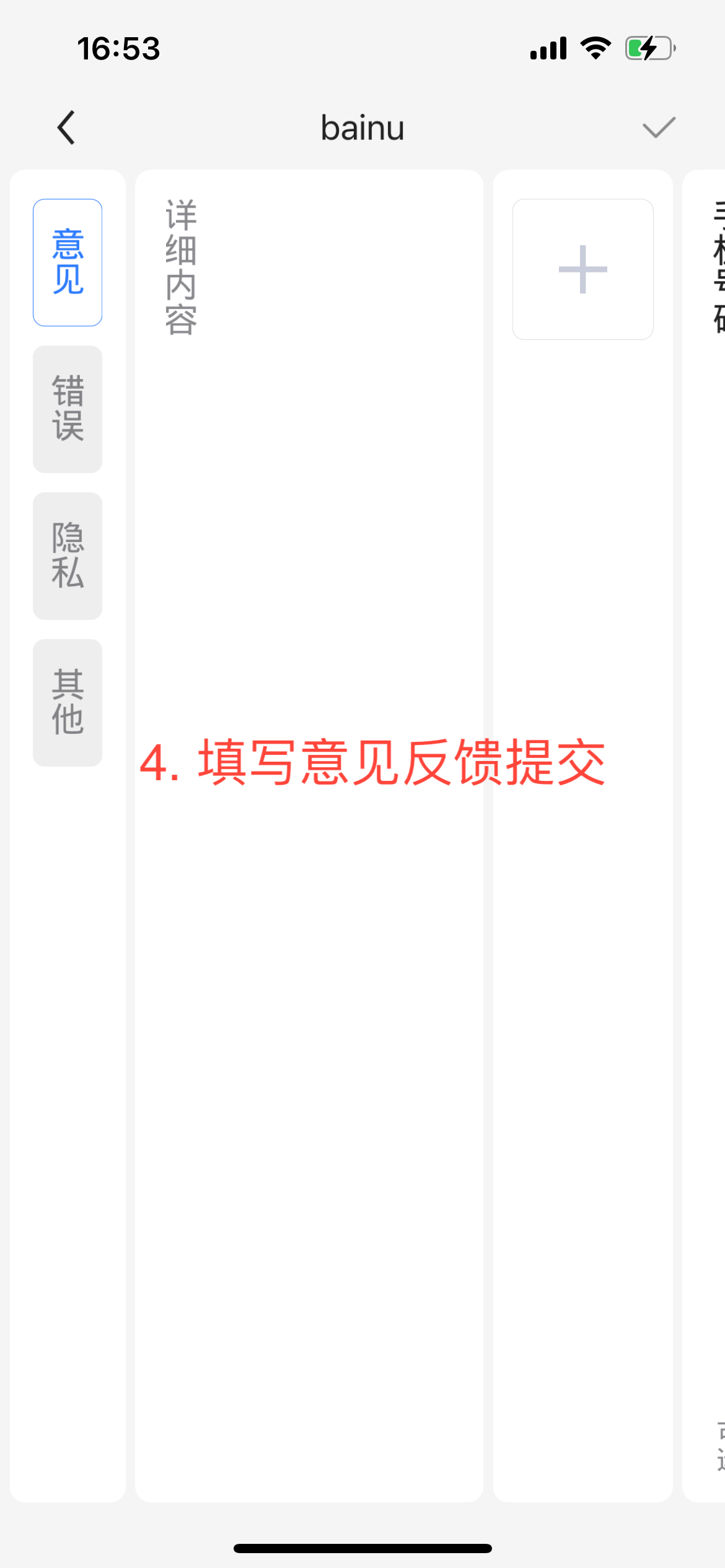 应用内提供了便捷的意见反馈提交功能,操作方法如下。可以提交意见建议、应用错误、隐私相关问题、其他问题,工作人员将在7日内解决并反馈。