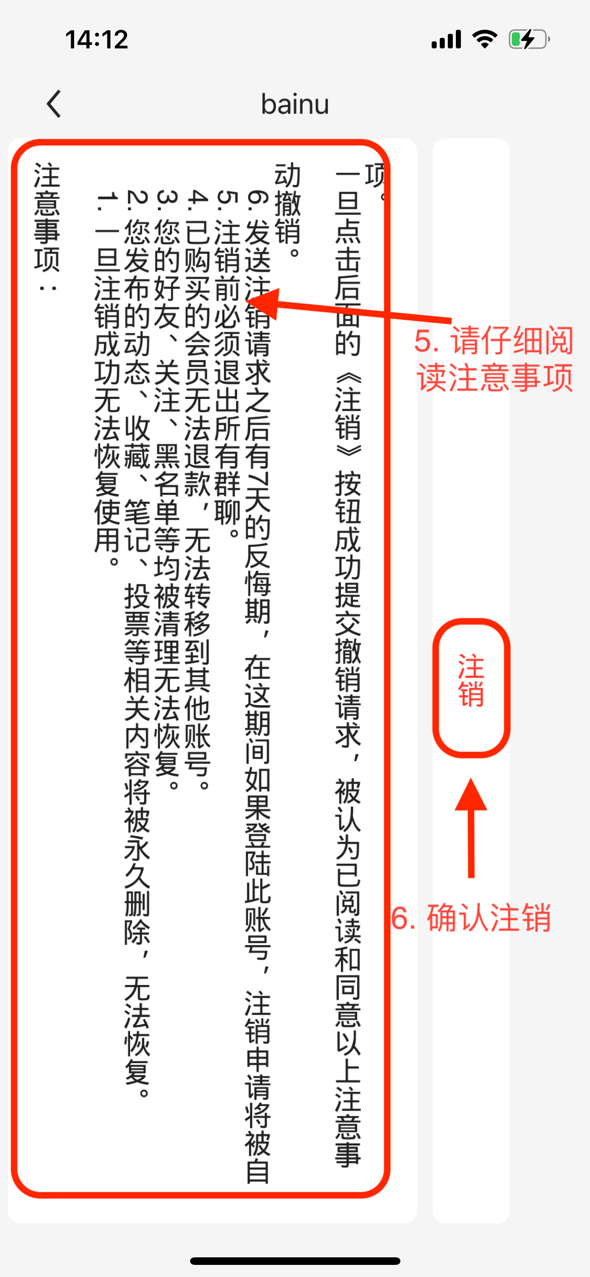 账号注销请求发送之后,有7天的反悔期,这期间再次登陆Bainu账号即可撤销注销请求。注销步骤如下: