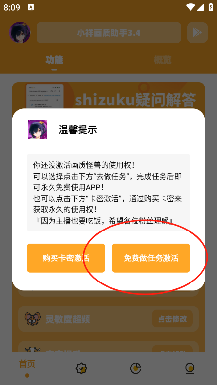 1、是免费使用的,您可以通过做任务使用,无需购买卡密,如图所示